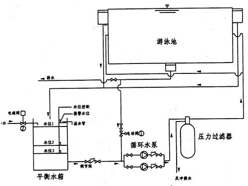 如圖這是一種比較簡單而實(shí)用的平衡水箱,有人入池后貯存泳池溢出的水量,人出池后將箱內(nèi)水送回泳池的調(diào)節(jié)作用,及過濾裝置利用泳池水反洗后的補(bǔ)水和其它補(bǔ)水作用。