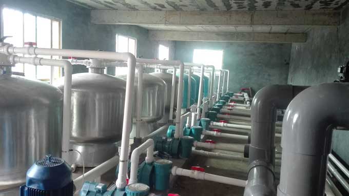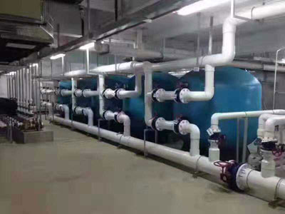 游泳池循環(huán)水凈化處理設備機房,一般由均衡水池(或平衡水池)、循環(huán)水泵、過濾器、加藥設施、換熱器、消毒設備、化學藥品和助凝劑、特殊設施、系統(tǒng)運行操作控制設備等內(nèi)容組成。