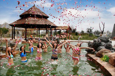 夏季在泡溫泉的過程當中,身體不斷的出汗會排除體內(nèi)多余的水分,特別脂肪會隨著汗液排除體外,達到減肥的效果。