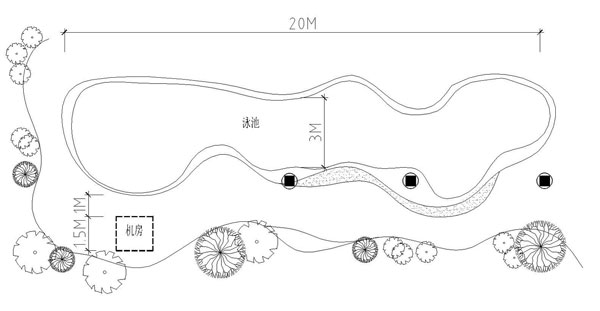 該泳池位于某高級(jí)住宅區(qū)的別墅庭院內(nèi),長(zhǎng)20米,寬3米,淺端水深1.3米,深端1.7米,平均水深1.5米。整個(gè)工程由泳池和一個(gè)全地下式簡(jiǎn)易機(jī)房組成,機(jī)房占地1.5*1.5米,高2.0米。設(shè)鋼爬梯上下,井口設(shè)不銹鋼蓋,方便開啟,可以容納所需設(shè)備。