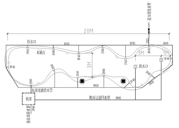 圖2泳池循環(huán)及補(bǔ)水系統(tǒng)