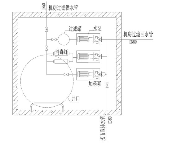 圖3簡(jiǎn)易機(jī)房中消毒、過濾、投藥系統(tǒng)