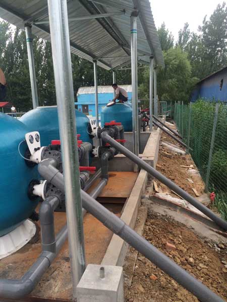 對于正常的游泳池溢流水,如要處理,就先進(jìn)行混凝處理,再經(jīng)過濾、游泳池循環(huán)水泵,然后再加藥消毒、最后進(jìn)入游泳池。主循環(huán)過濾罐的濾料一般采用石英砂,其壽命長,過濾效果好。
