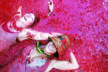 美國佛羅里達(dá)州著名的番茄浴,長期沐浴能讓人充分吸收番茄的營養(yǎng)成份。不過我想沐浴的時(shí)候會不會忍不住喝口番茄汁呢。
