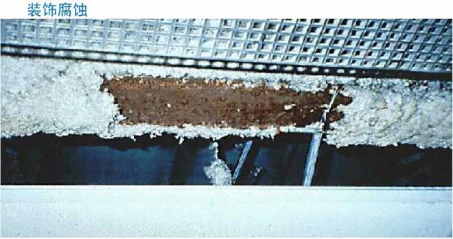 室內(nèi)游泳池由于池水表面蒸發(fā)容易使室內(nèi)充滿潮濕含氯的空氣,當(dāng)潮濕含氯的空氣遇到較冷物體就會凝結(jié)出冷凝水,由于冷凝水含有大量的氯,將會腐蝕所接觸到的建筑物,如使裝修面層生銹、起鼓、掉漆等,嚴(yán)重的時候回因腐蝕到受力鋼筋,使之抗拉強度降低而斷裂,造成房屋垮塌等危險。這情況在發(fā)達(dá)國家增發(fā)生過多次。