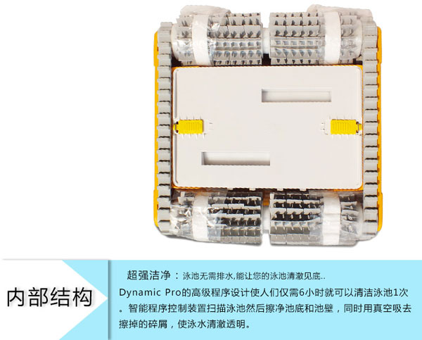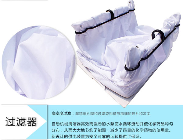 3、同時(shí)過濾袋指示燈讓我們知道何時(shí)要傾倒袋中的雜物。工作周期短,高級(jí)程序設(shè)計(jì)使人們僅需6小 時(shí)就可以清潔泳池一次。