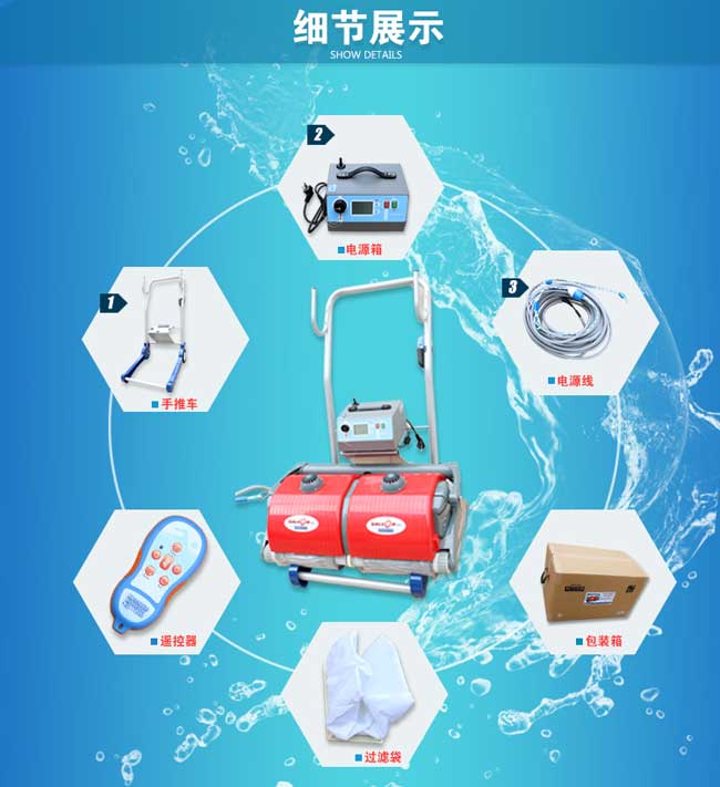 作為合格的水質(zhì)管理員應(yīng)知道泳池水處理中有一項池底清潔處理工作必須用到游泳池吸污機(jī),也叫水下吸污機(jī),水龜?shù)龋饕槍Τ厮械钠ば、頭發(fā)、樹葉、塵埃等臟物進(jìn)行清潔,使水清澈透明。
